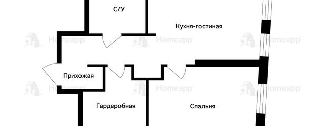Планировка для жизни: пространство площадью 48 кв. м включает в себя просторную зону отдыха и отдельную оборудованную гардеробную, что позволяет поддерживать идеальный порядок.